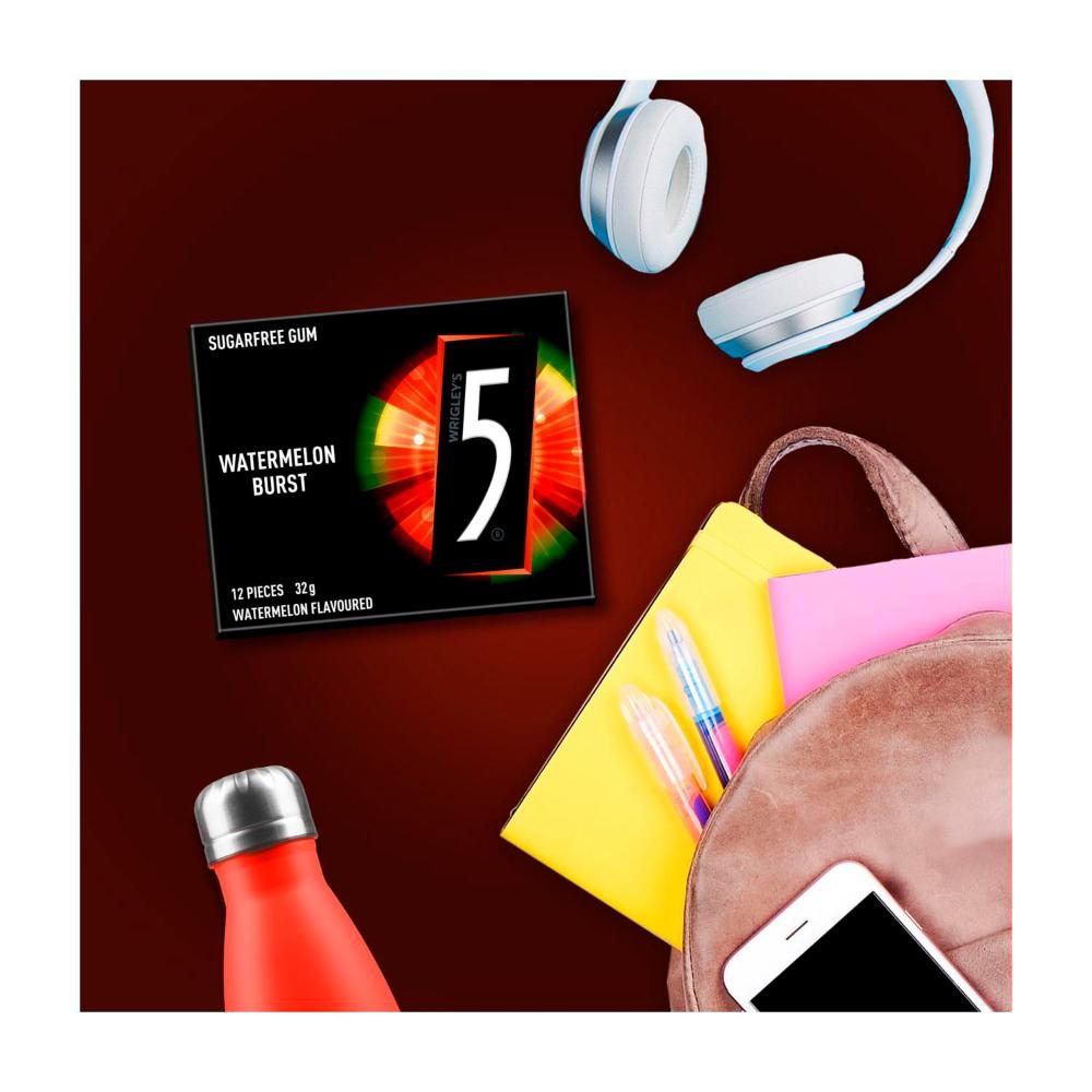 5 Gum Watermelon Burst Sugar Free Gum 12 Piece - 32g