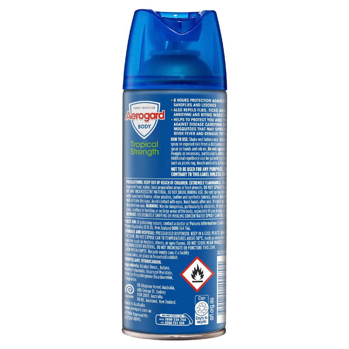 Aerogard Tropical Strength Insect Repellent Aerosol Spray provides up to 8 hours protection from mosquitoes & other insects.