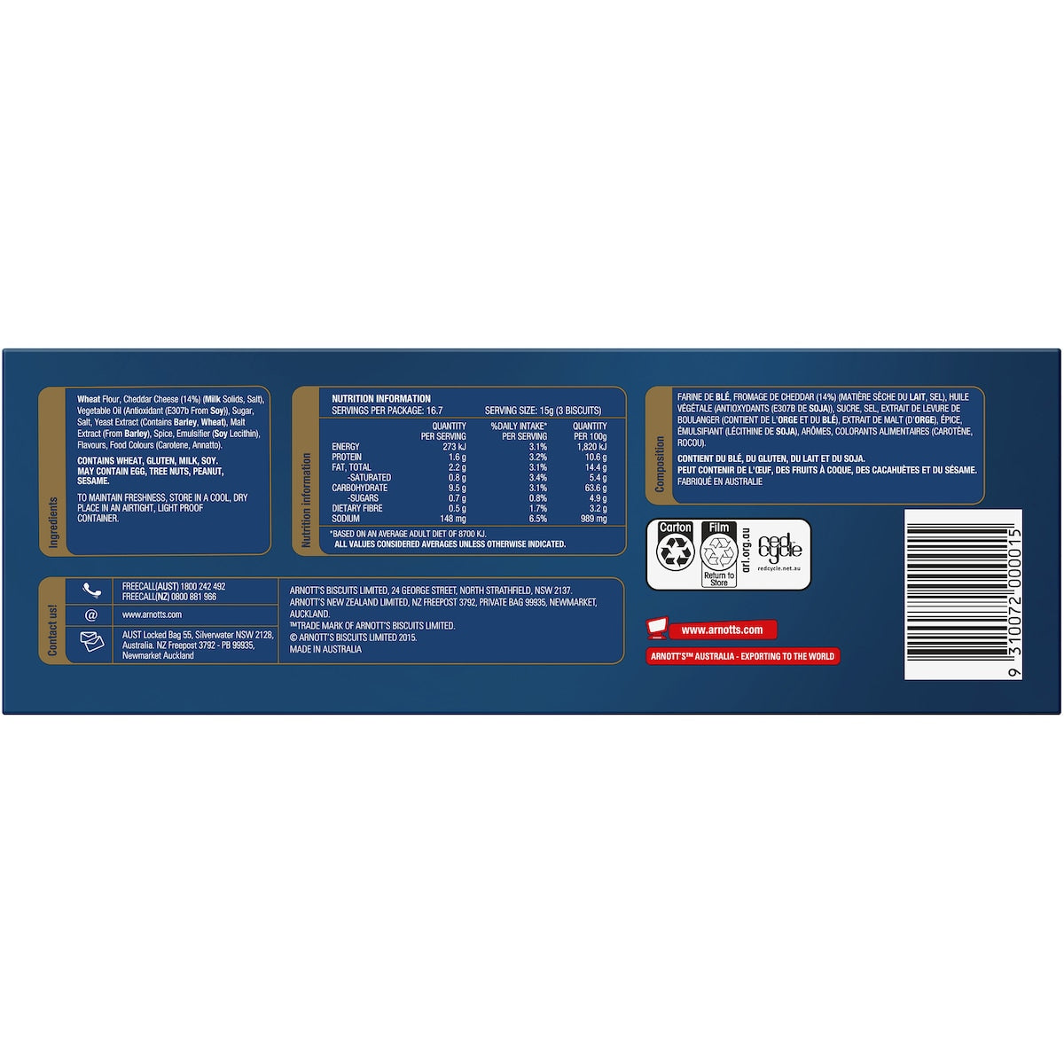 Arnott's Country Cheese Crackers 250g