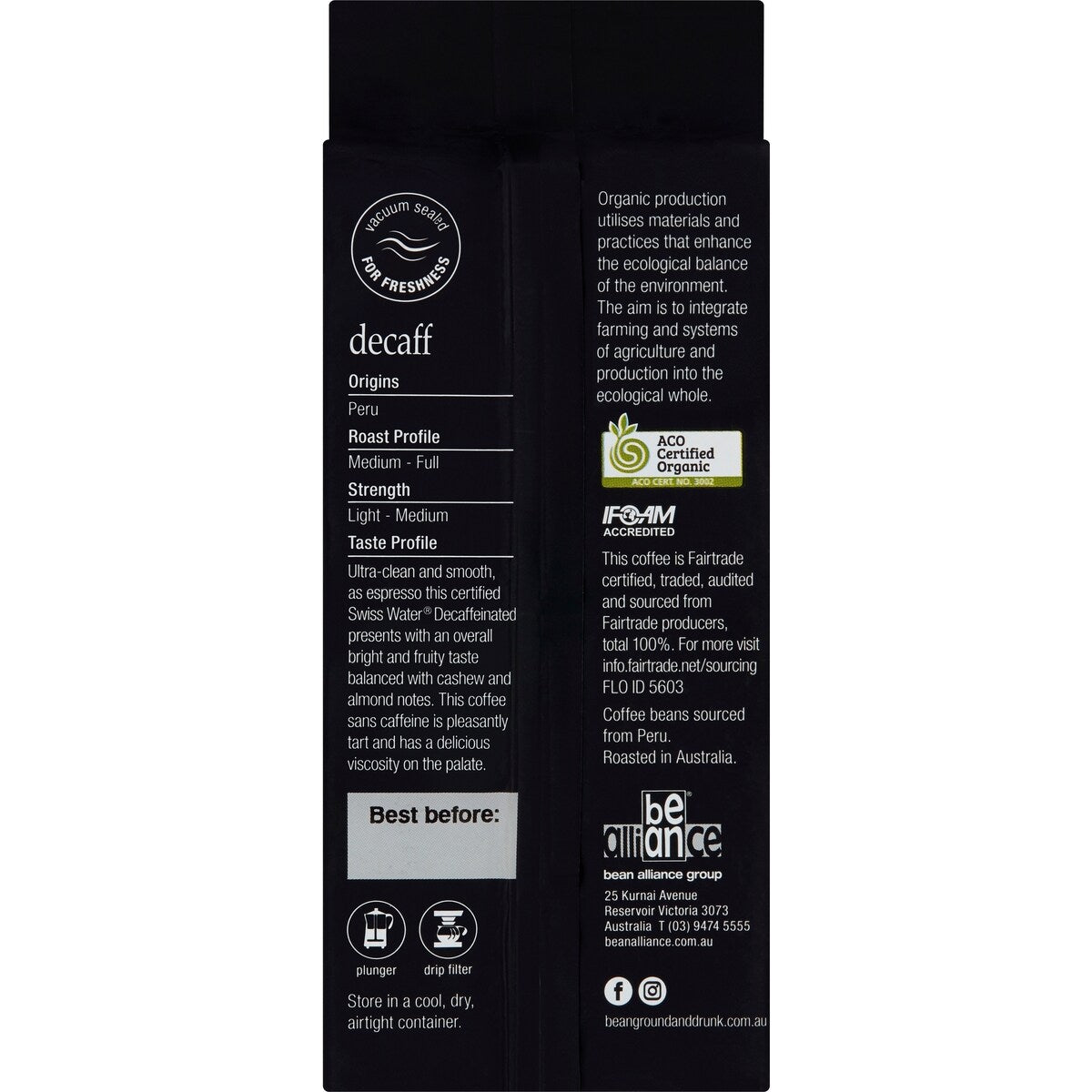 Bean Ground & Drunk Ground Coffee Organic Fairtrade Decaff 250g