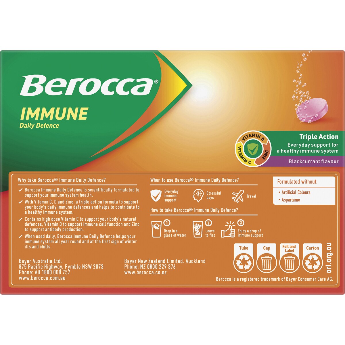 Berocca Immune Daily Defence is an advanced triple action formula containing vitamin C, D and Zinc that strengthens your immunity all year round.