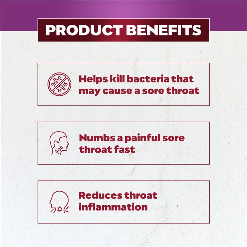 Find fast relief from throat pain with Betadine Sore Throat Anaesthetic Berry Lozenges. These lozenges are designed to numb sore throats quickly, making them suitable for adults and children over 6 years.