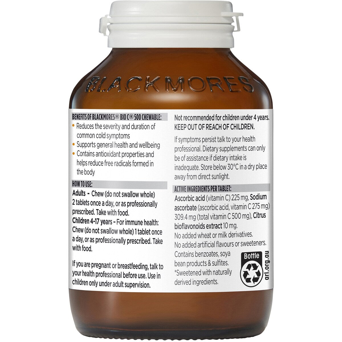 Blackmores Bio C 500mg Chewable Vitamin C Immune Support Tablets 125 pack