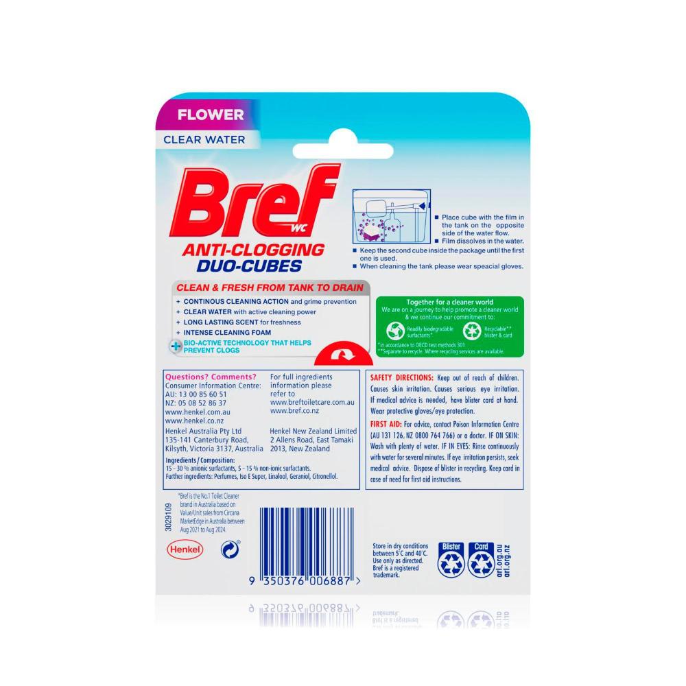 Bref Duo Cubes Clear Water Toilet Cleaner In- Cistern Block Flower 2x50g - 100g