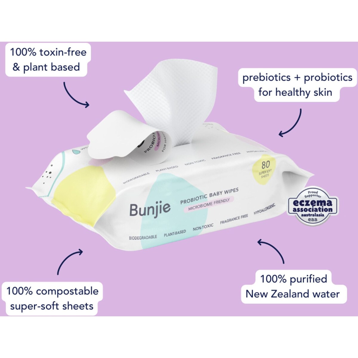 Bunjie Baby Probiotic Baby Wipes 80 Pack