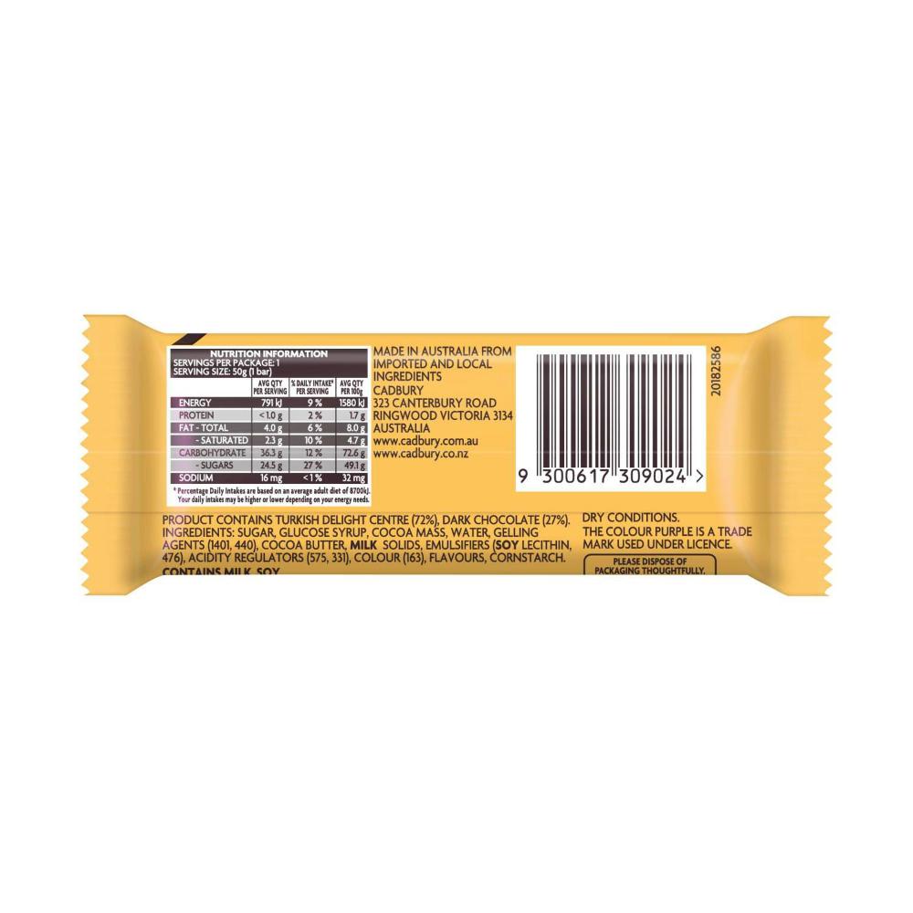 Cadbury Turkish Delight Dark Chocolate Bar - 50g