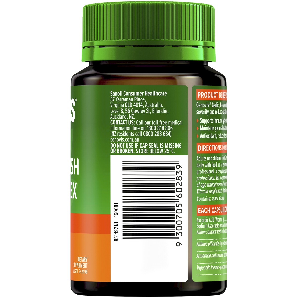 Cenovis Garlic Horseradish + Vitamin C Complex For Immune Support 120 pack