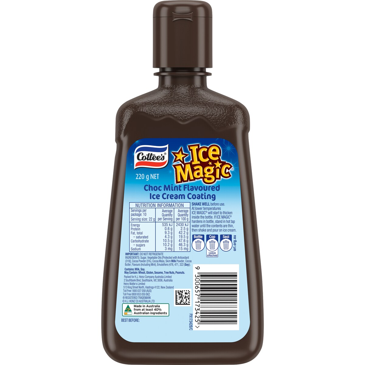 Cottee's Ice Magic Choc Mint Ice Cream Topping 220g