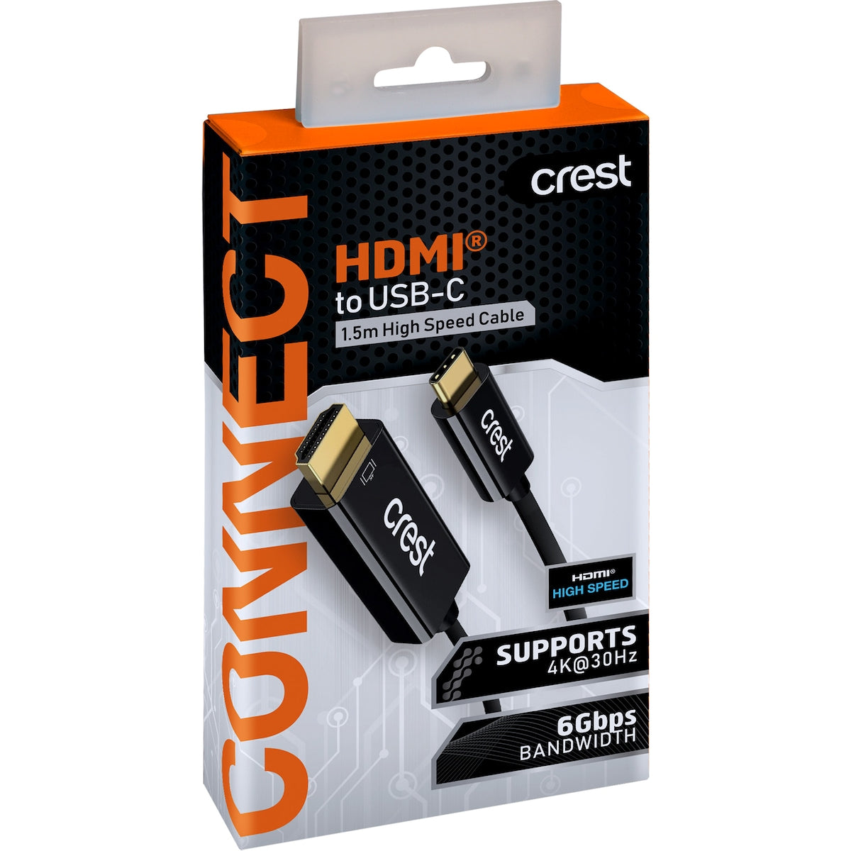 The Crest HDMI to USB-C cable lets you connect your smart device or laptop to a TV or monitor for crystal clear video and audio output.