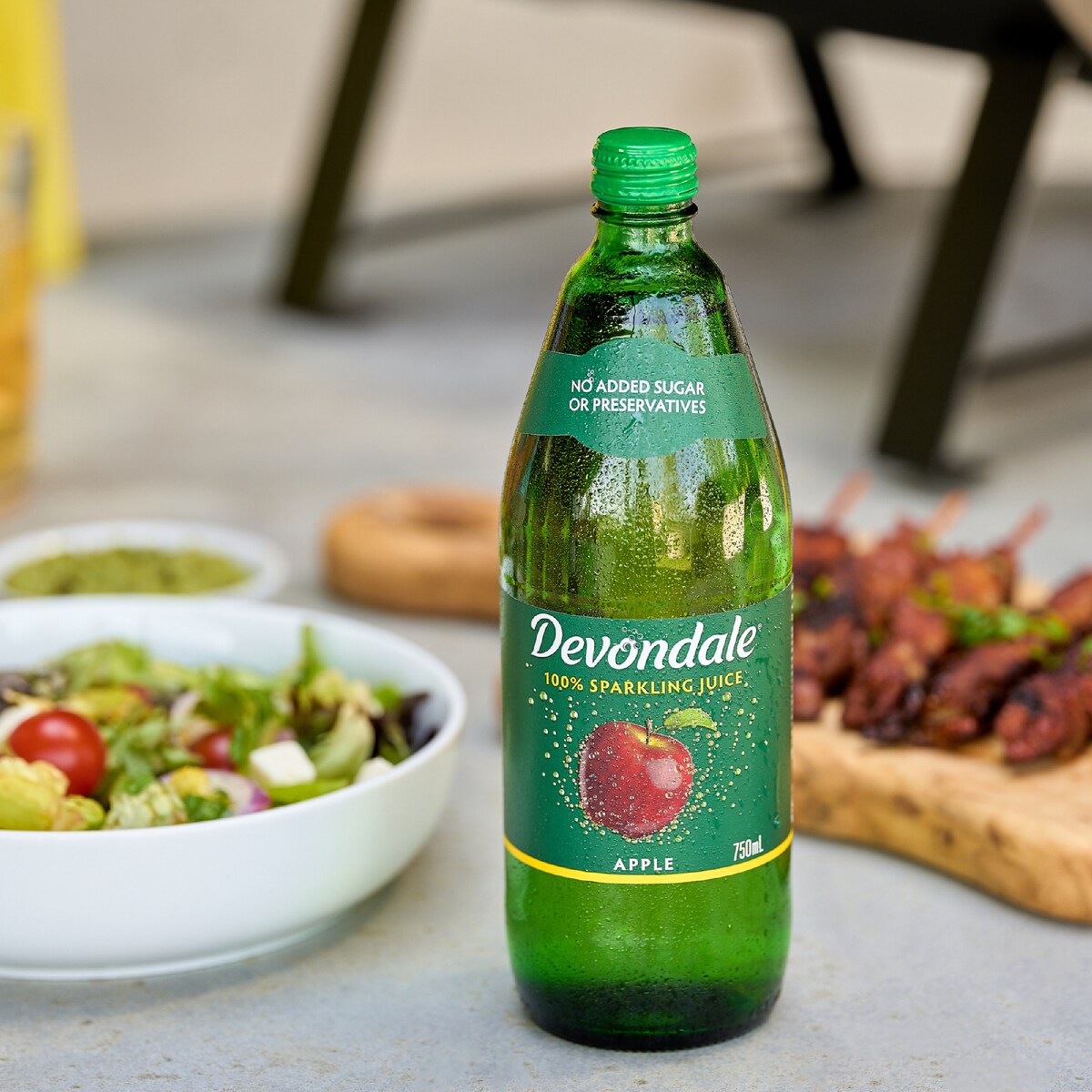 Devondale Sparkling Apple Juice is 100% sparkling juice. Deliciously crisp and sweet taste of fresh apples and light lemon sourness delicately infused with light bubbles for a great drinking experience.