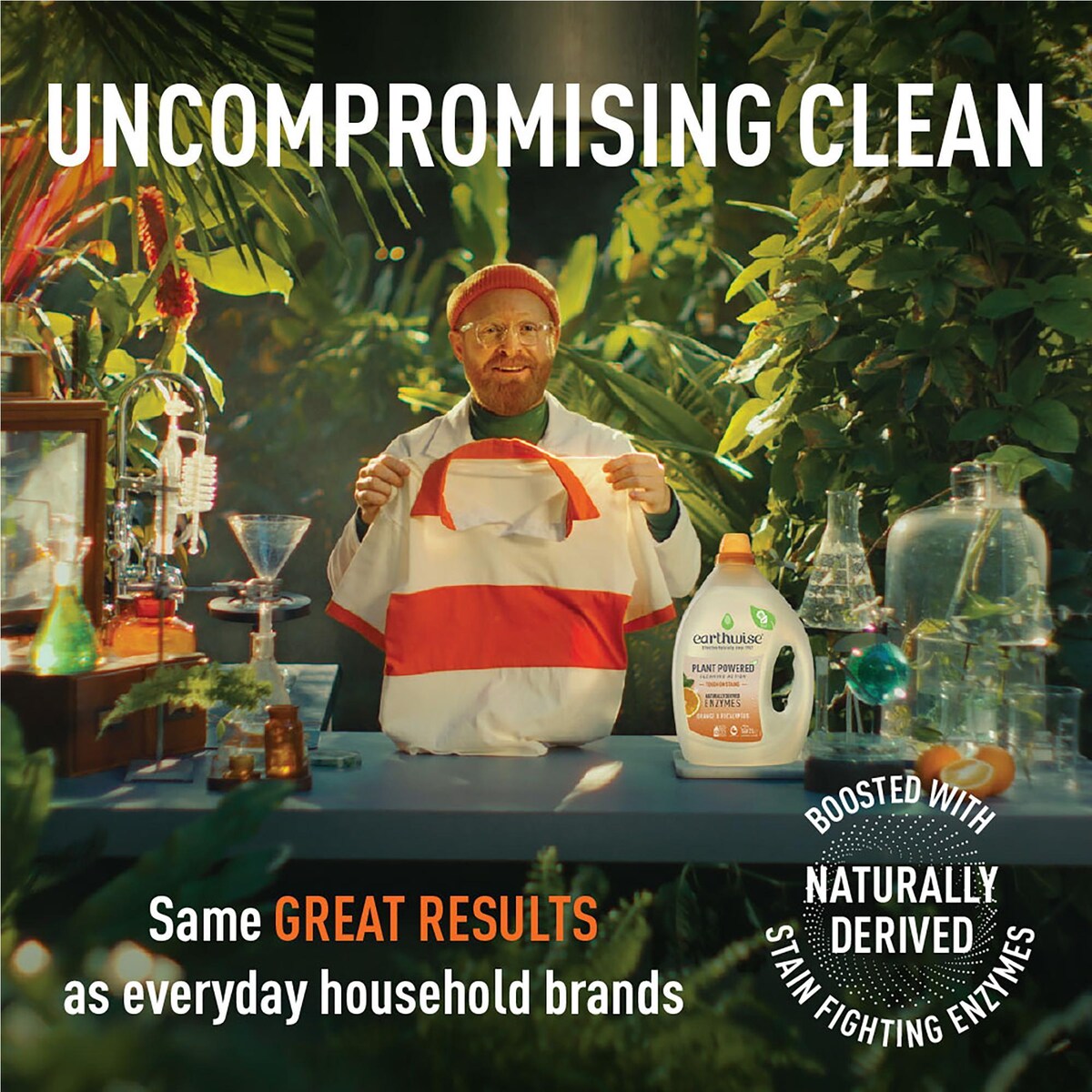 PLANT POWERED CLEANING ACTION - Earthwise Orange & Eucalyptus Laundry Detergent Liquid is tough on stains boosted with naturally derived enzymes and free from nasties^^ to deliver exceptional clean deep into fibres in every wash