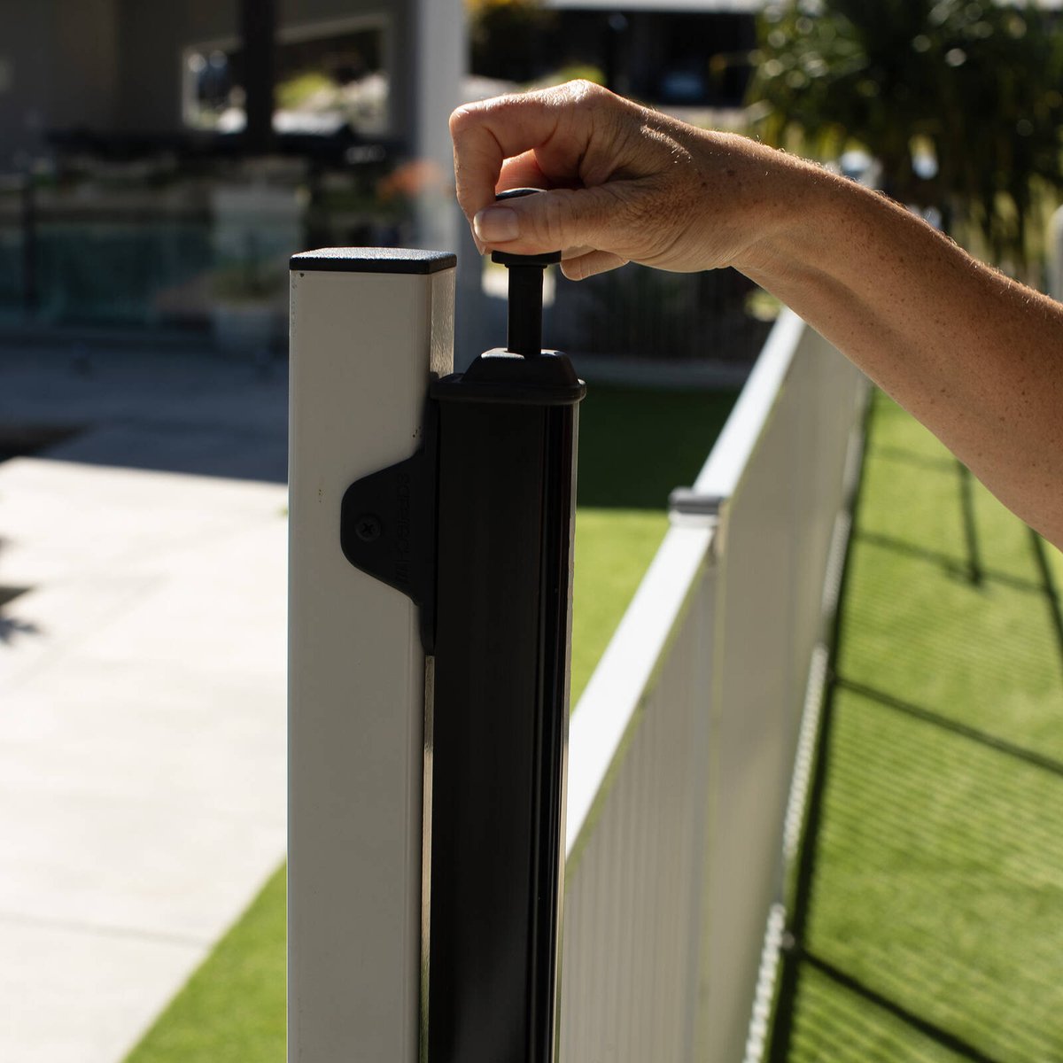 The G8Safe by ProtectorAl Top Pull Key Lockable Pool Gate Latch is an essential component for ensuring safety around pools. This latch is easy to install and compatible with various pool and garden fence panels, posts, and gates, including timber and steel options. Constructed from UV resistant polymer with stainless steel and aluminium components, it is built to withstand harsh Australian and New Zealand environments. The latch includes a hooked striker for reliable security and meets Australian Standards AS 1926.1-2007/2012 and NZS 8500 when installed correctly. With a lifetime warranty, it provides peace of mind for pool safety.