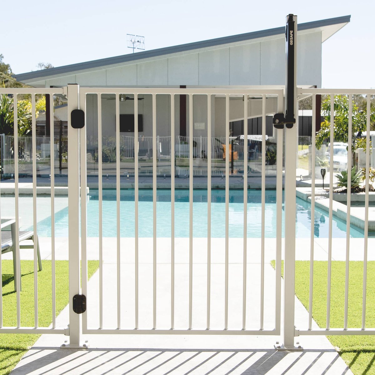 The Protectoral g8safe Black Mega Value Pool Key Lockable Gate Latch Kit is an essential component for ensuring safety around pools. This kit includes a top-pull, key-lockable latch with adjustable self-closing hinges, making it suitable for various pool and garden gates. Constructed from UV resistant polymer, stainless steel, and aluminium, this latch is designed to withstand harsh Australian and New Zealand environments. The product is easy to install and compatible with Protector Al Pool and Garden Fence Panels, Posts, and Gates, as well as many other timber or steel gates. Additionally, it meets Australian and New Zealand safety standards when installed correctly and is backed by a lifetime warranty.