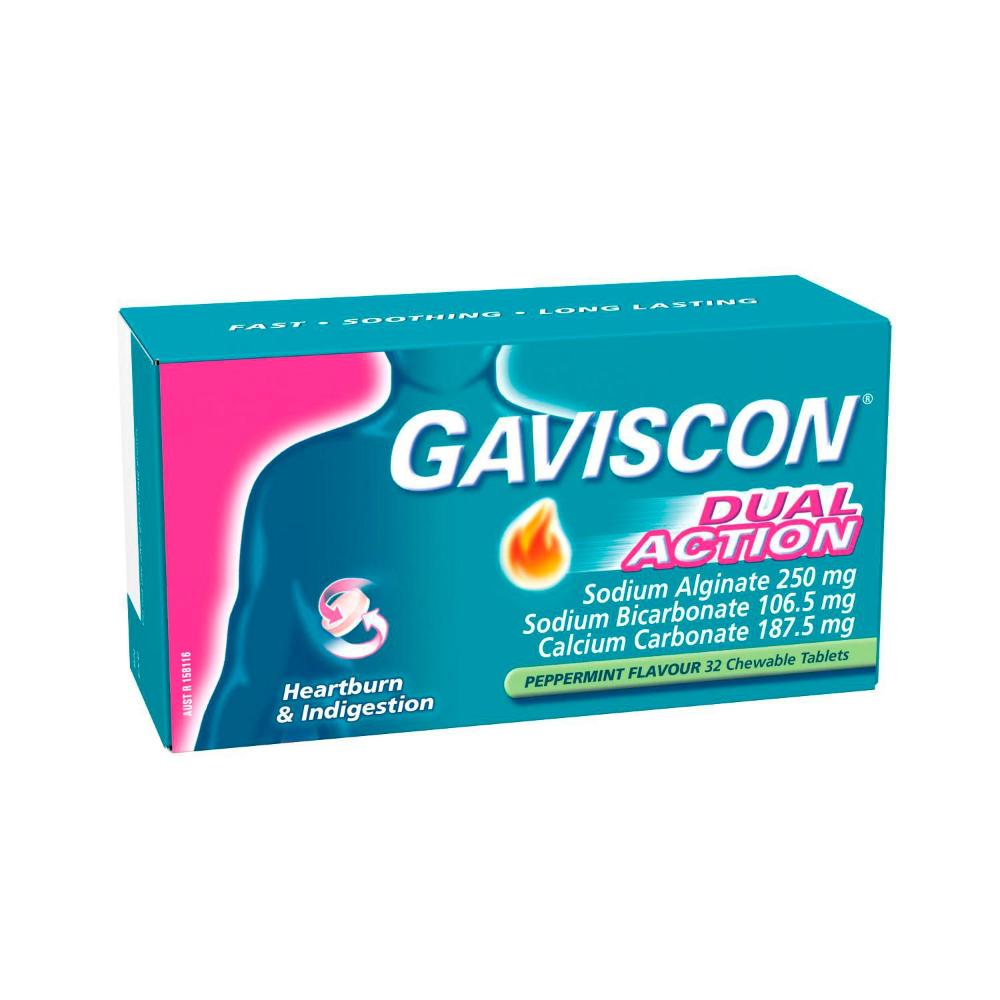 Gaviscon Chewable Tablets Heartburn and Indigestion Relief Peppermint - 32 pack