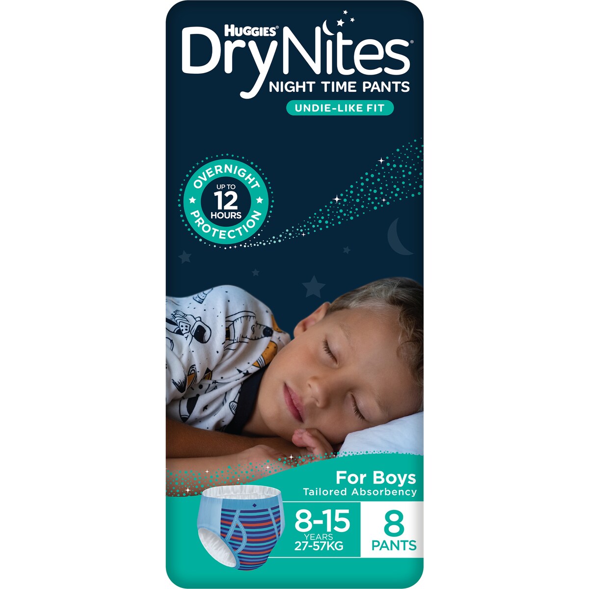 Huggies Drynites Night Time Pants For Boys 8-15 Years (27-57kg) 8 Pack