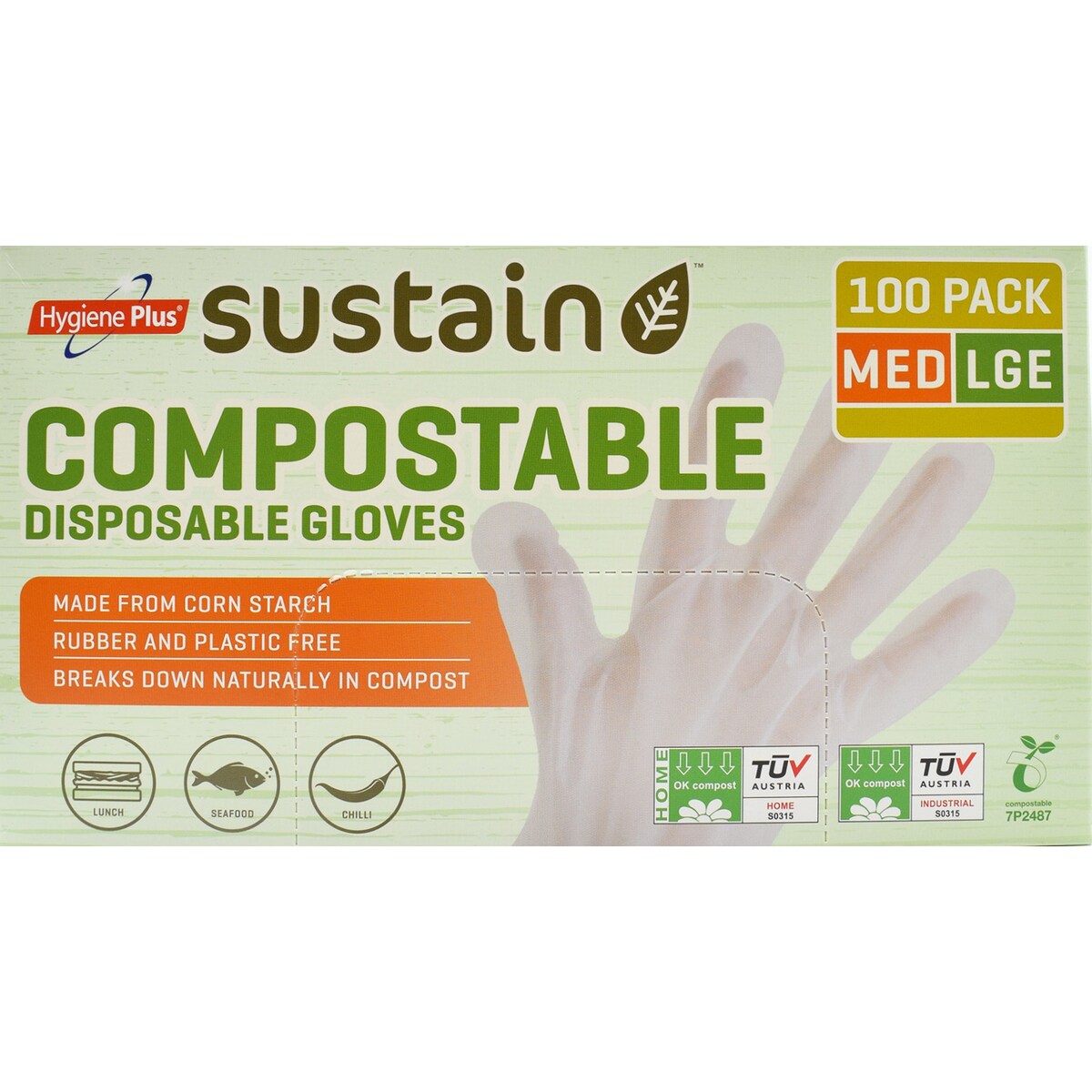 Hygiene Plus Compostable Disposable Gloves Medium/Large 100 pack