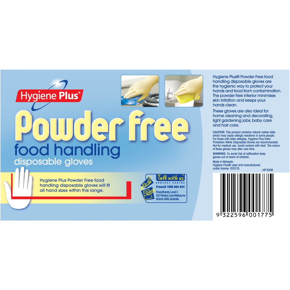 Hygiene Plus Latex Gloves Disposable Powderfree One Size 100 pack