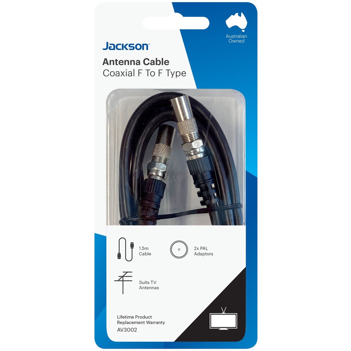 Jackson 1.5 Metre F-to-f Tv Antenna Foxtel Cable With Pal Adaptors Each