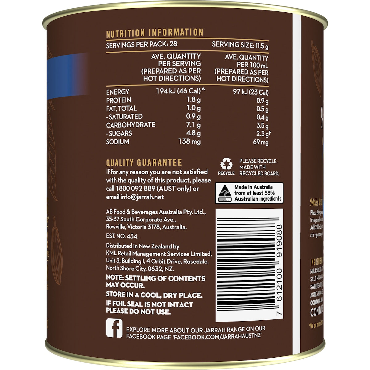 Jarrah Hot Chocolate Powder 322g