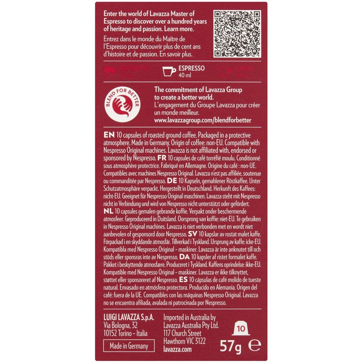 Lavazza Espresso Classico Nespresso Compatible Coffee Pods 10 pack