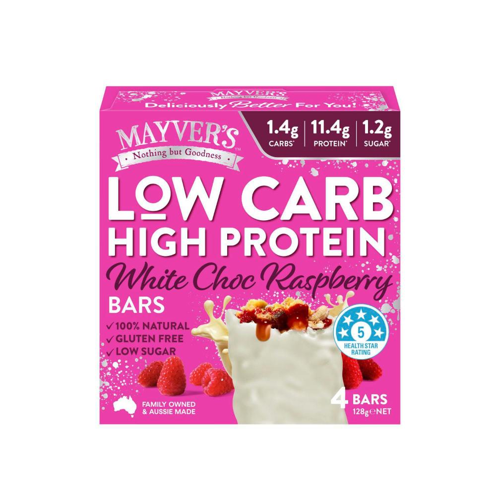 Mayver's Low Carb High Protein White Choc Raspberry 4 Pack - 128g
