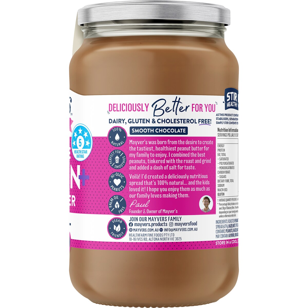 Mayver's Smooth Choc Protein Peanut Spread 375g