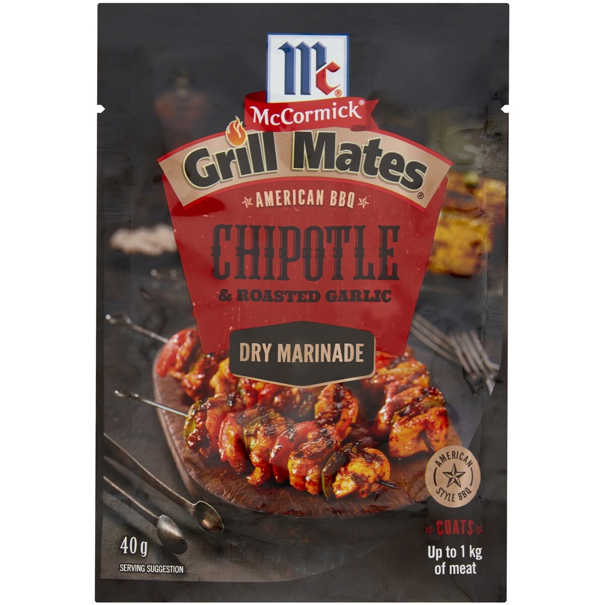 • 1x 40 g sachet McCormick Grill Mates Chipotle & Roasted Garlic Dry Marinade