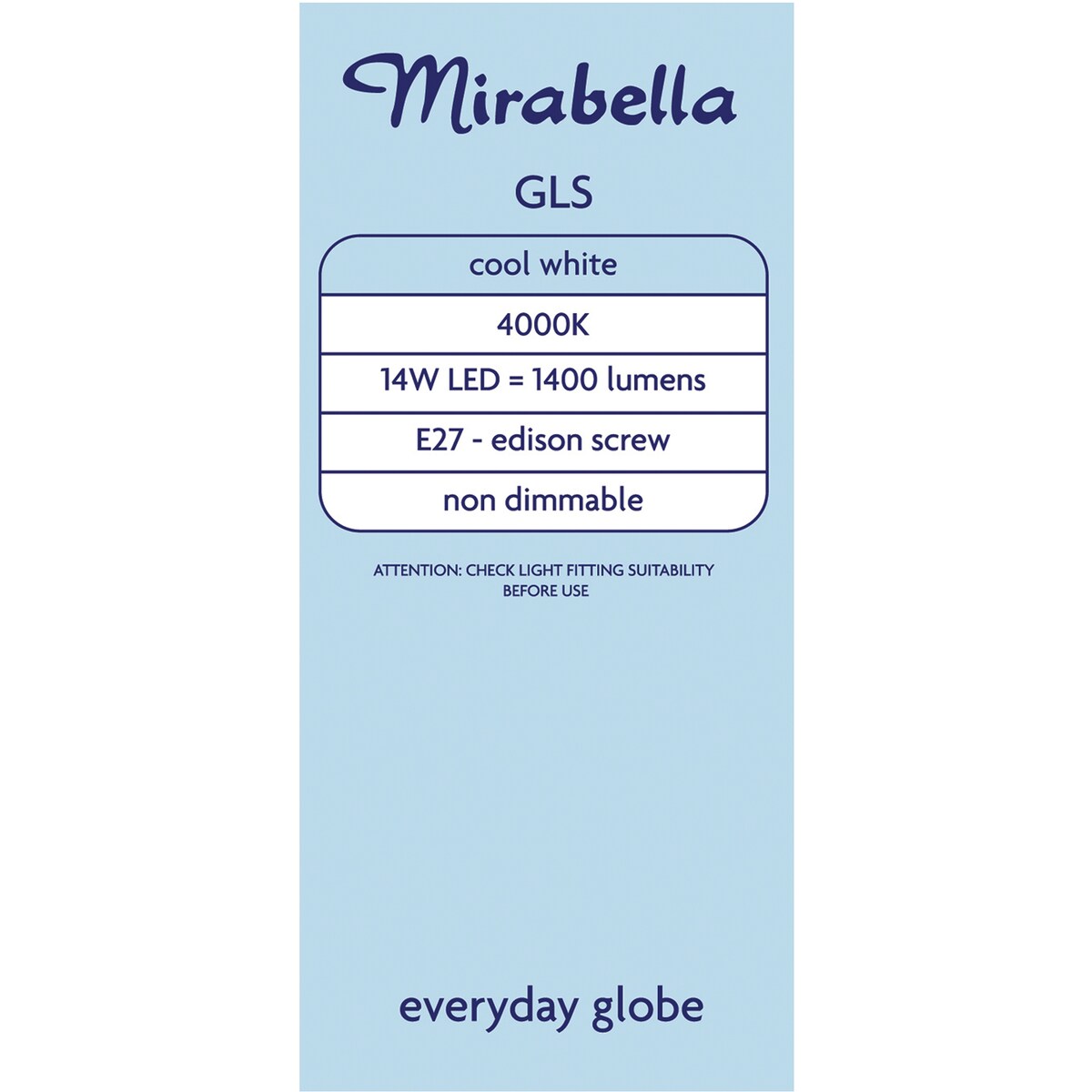 Mirabella 14W 1400lm LED GLS Everyday Globe Edison Screw Cool White each