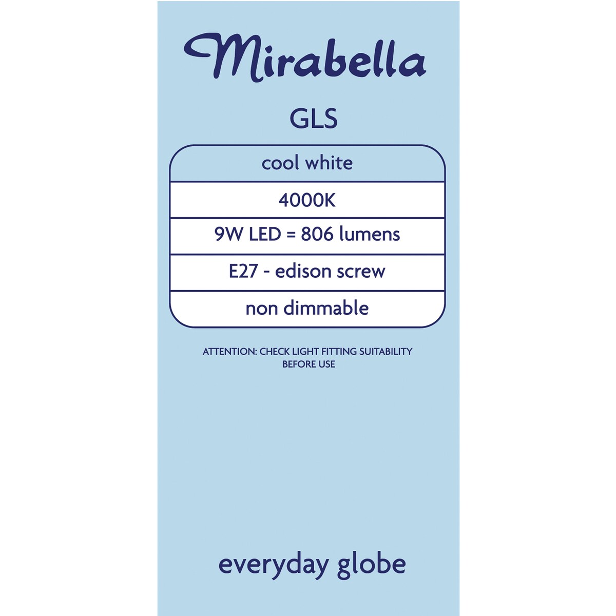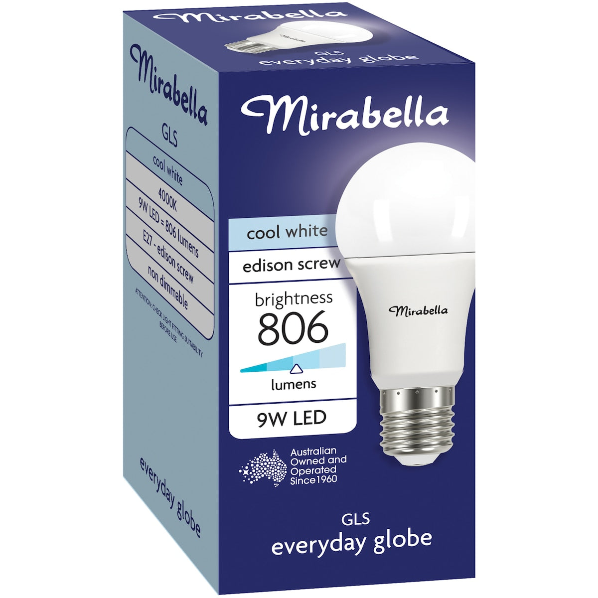 Mirabella LED GLS Edison Screw 9W 806lm Cool White Light Globe each