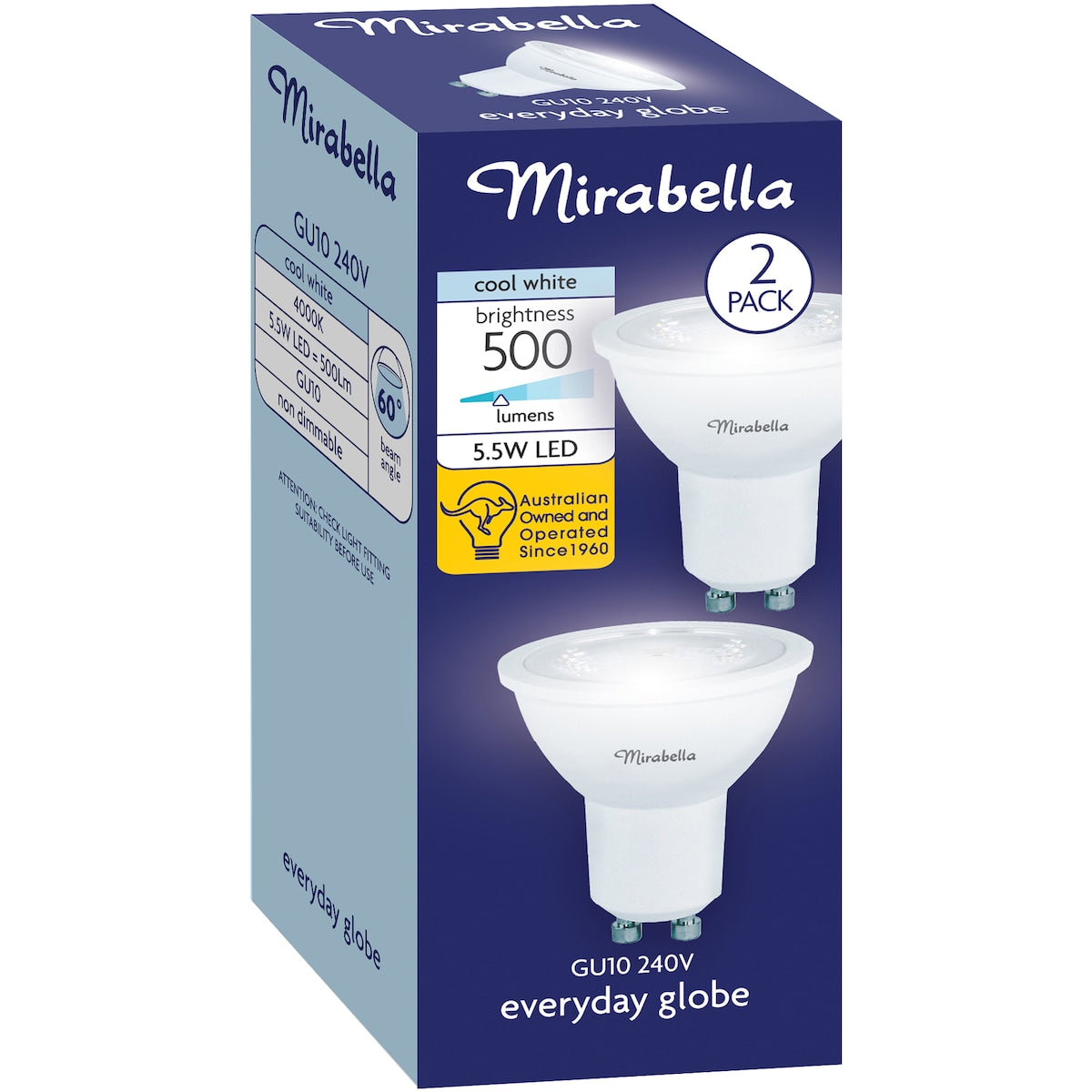 Mirabella LED GU10 5.5W 500lm Cool White Light Globe 2 pack
