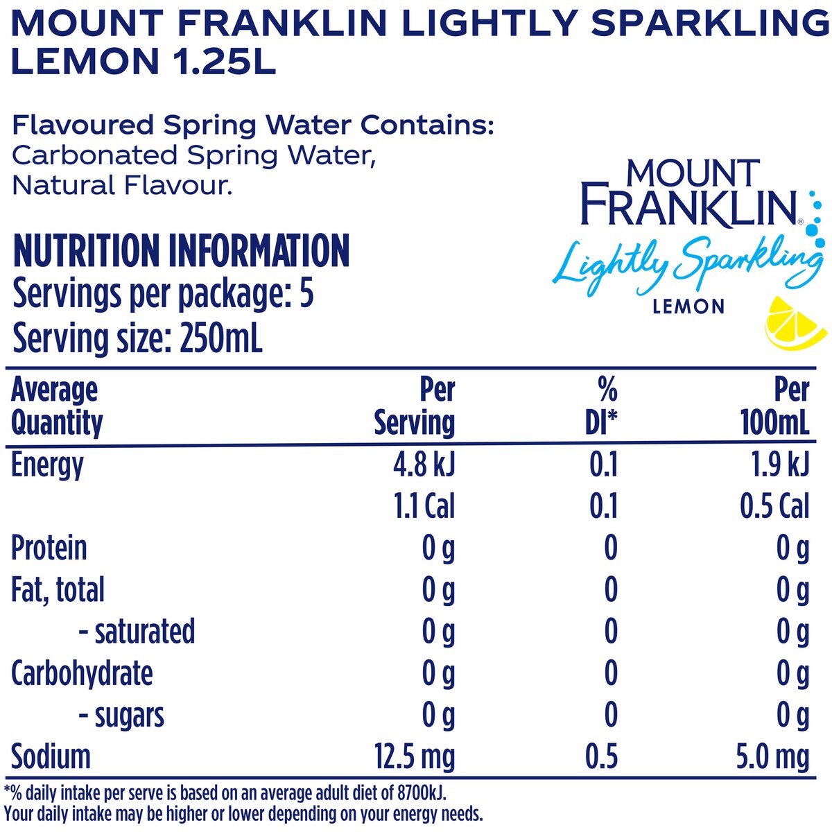 Mount Franklin Lightly Sparkling Water Lemon Bottle 1.25L