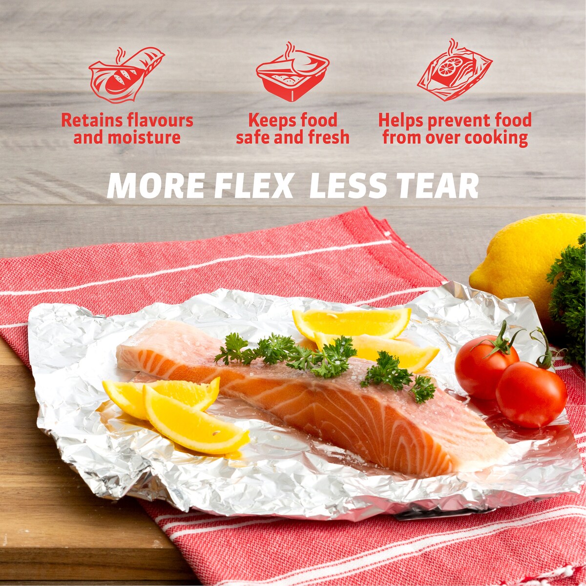Multix Alfoil retains flavours and moisture. Keeps food safe and fresh and helps prevent food from over cooking.
