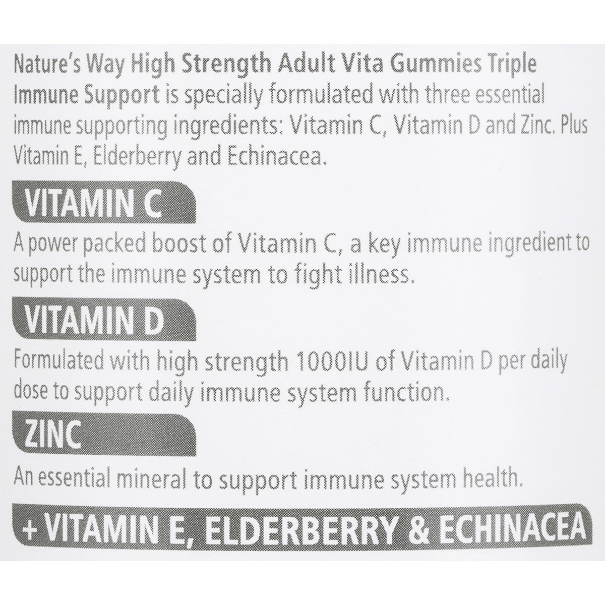 Plus Vitamin E, Elderberry and Echinacea.