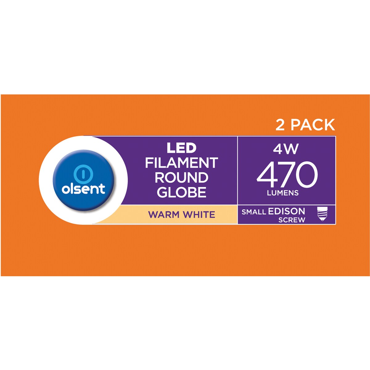Olsent LED Filament Round Globe 4W Small Edison Screw 2 pack