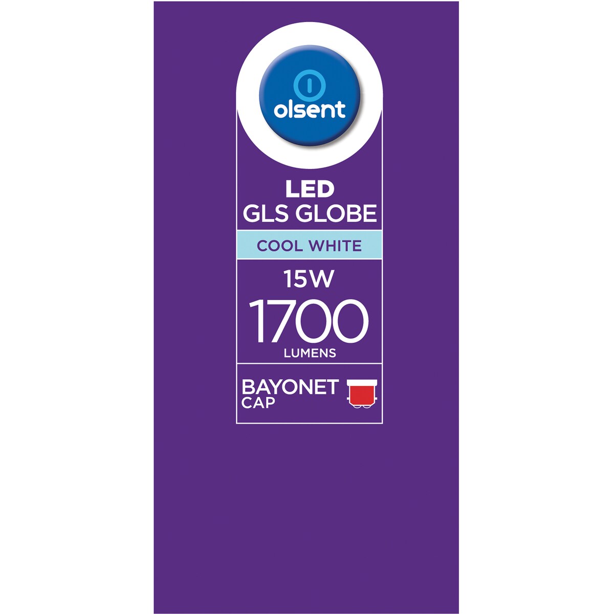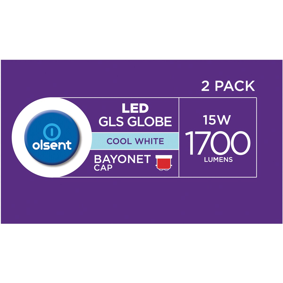 Olsent LED GLS Bayonet Cap 15W 1700lm Cool White Light Globe 2 pack