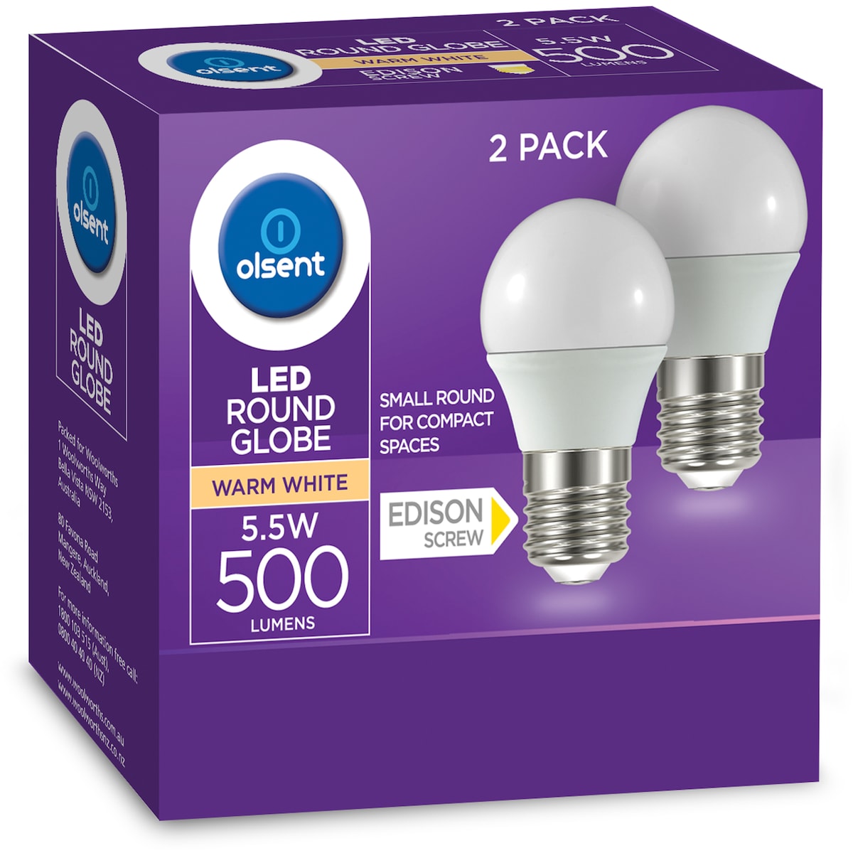 Olsent Led Round Es 5.5W 500Lm Ww Round Globe 5.5 Watt 2 pack