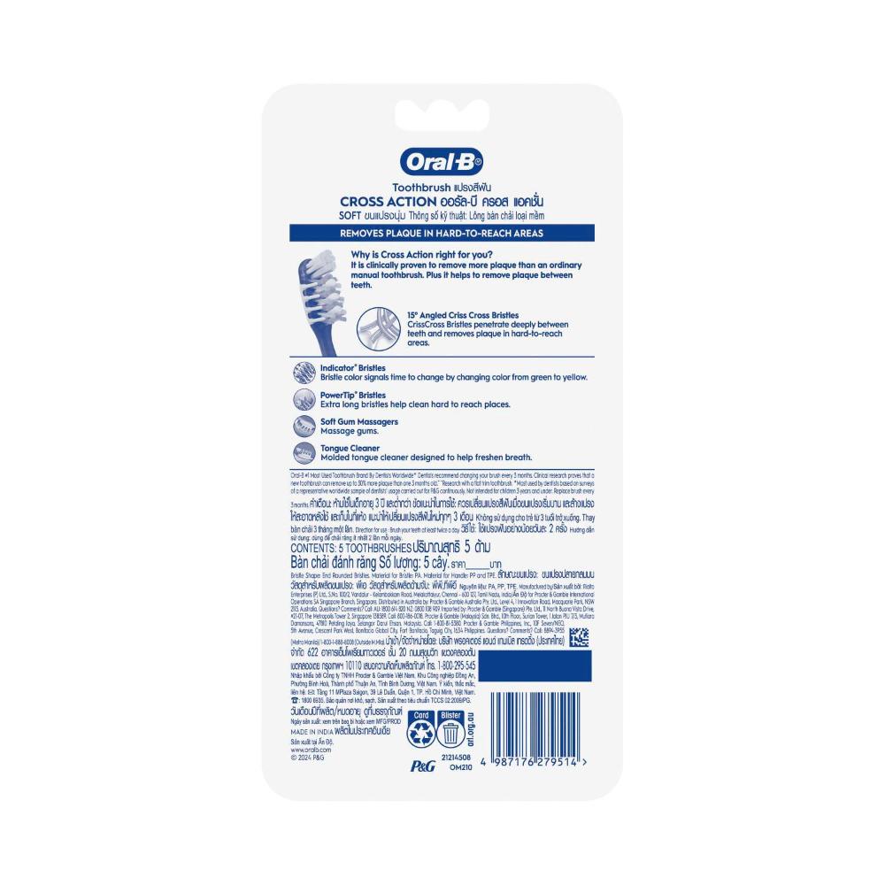 Oral B Cross Action Gum Care Soft Toothbrush - 5 Pack