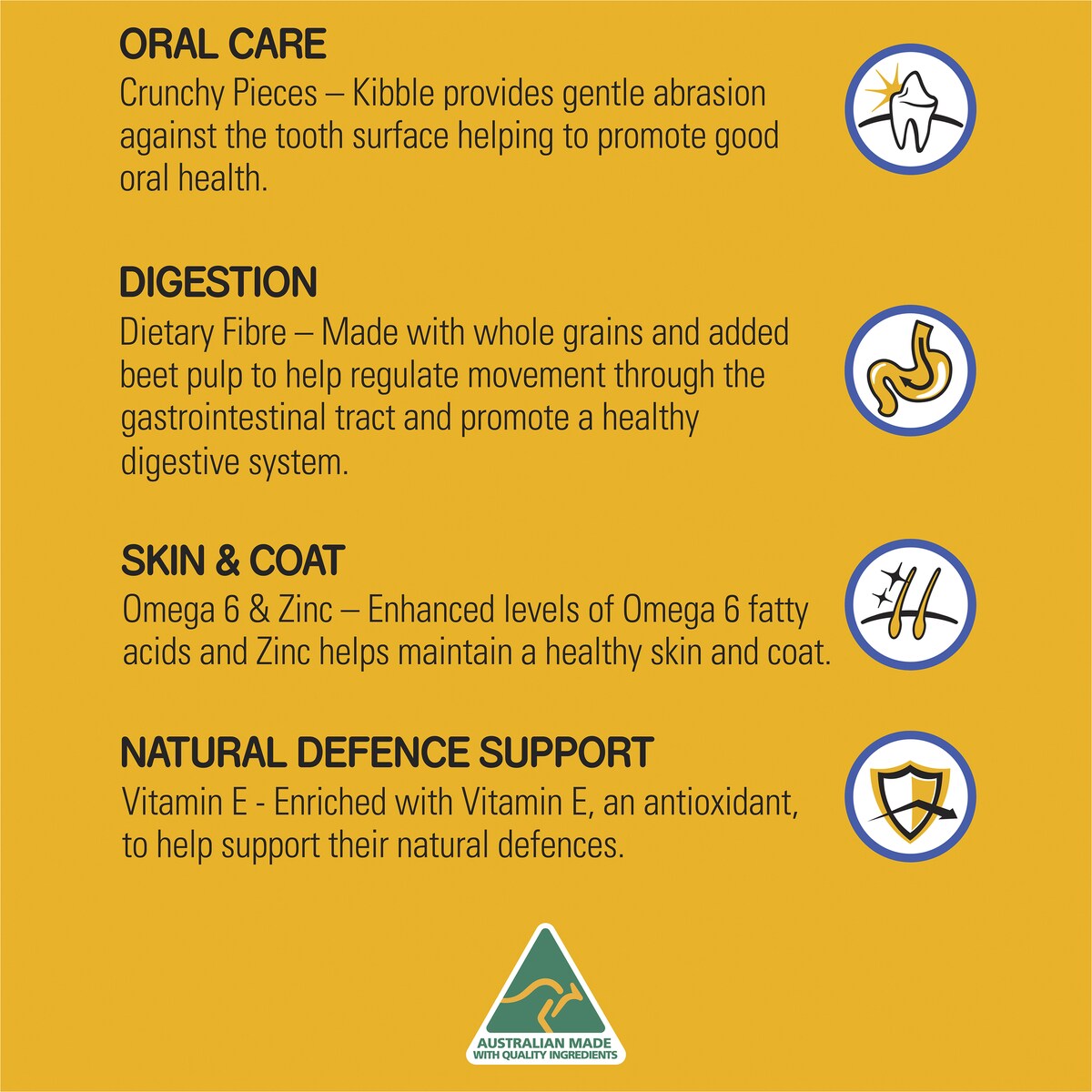 ORAL CARE Crunchy Pieces – Kibble provides gentle abrasion against the tooth surface helping to promote good oral health.