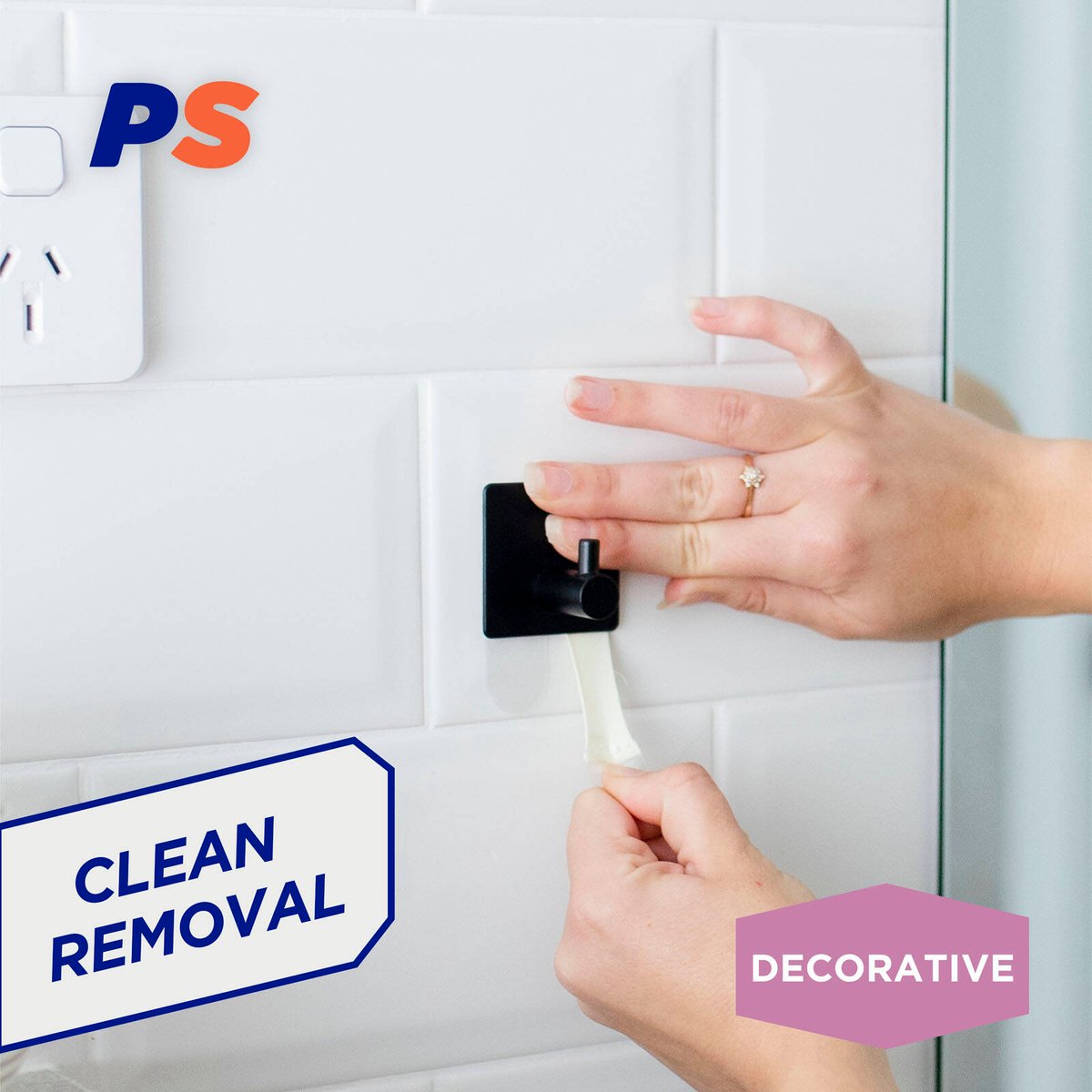 Permastik Matte Black Deco Hooks 2 Pack are adhesive hooks designed for hanging items without the need for drilling or screws, holding up to 1kg.