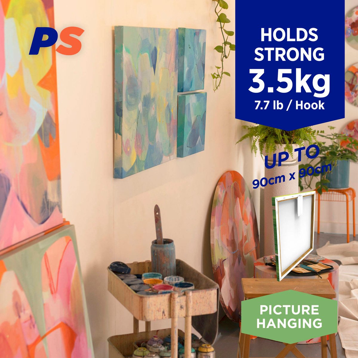 The Permastik Extra Large Canvas Hangers provide a simple solution for hanging canvases up to 90cm x 90cm. Each pack contains two hooks and four self-adhesive strips, allowing for easy application and clean removal. The built-in level ensures accurate installation, while the lip and spacer design keeps the canvas frame securely in place. These hangers can support weights of up to 3.5kg, making them suitable for various DIY and decorating projects.