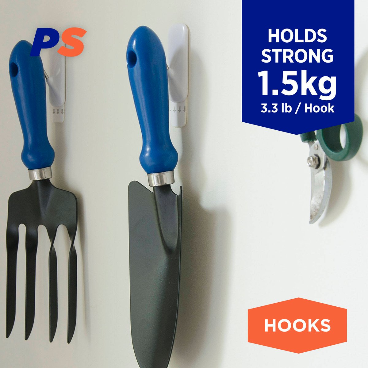 These hooks are ideal for hanging belts, accessories, decorations, cleaning tools, and small kitchen items. Each hook can hold up to 1.5kg, making them suitable for a range of applications. The removable adhesive allows for easy application and clean removal, making them a practical choice for rental properties or temporary projects. The pack contains four hooks and four adhesive strips, providing a simple solution for organisation and display.