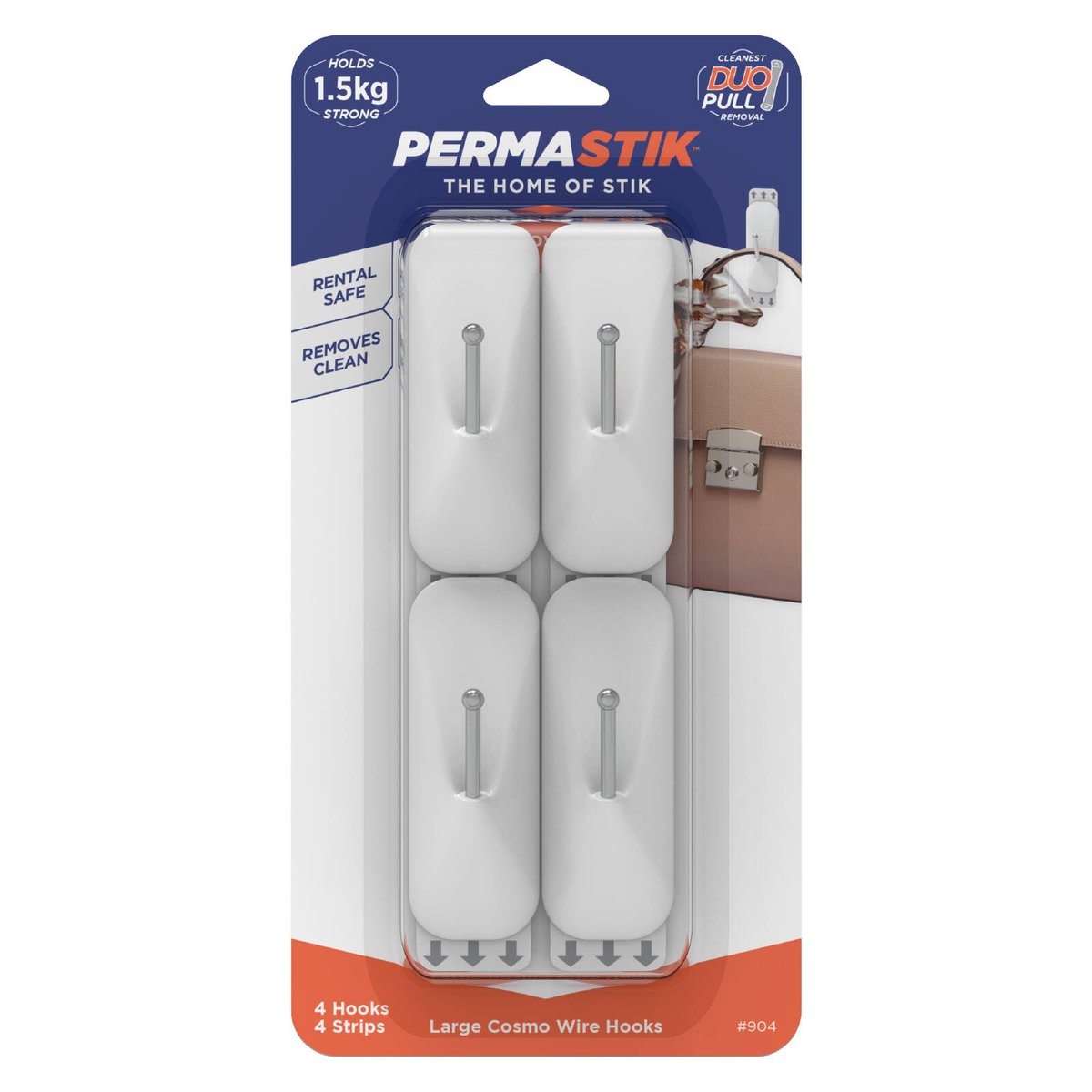 Permastik Large Cosmo Wire Hooks 4 Pack provide a practical solution for hanging items securely.
