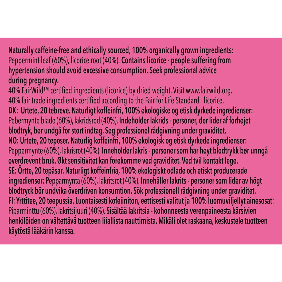Made with organic licorice and peppermint. A sweet and deliciously refreshing organic thrill. Ethically sourced, 100% organically grown ingredients