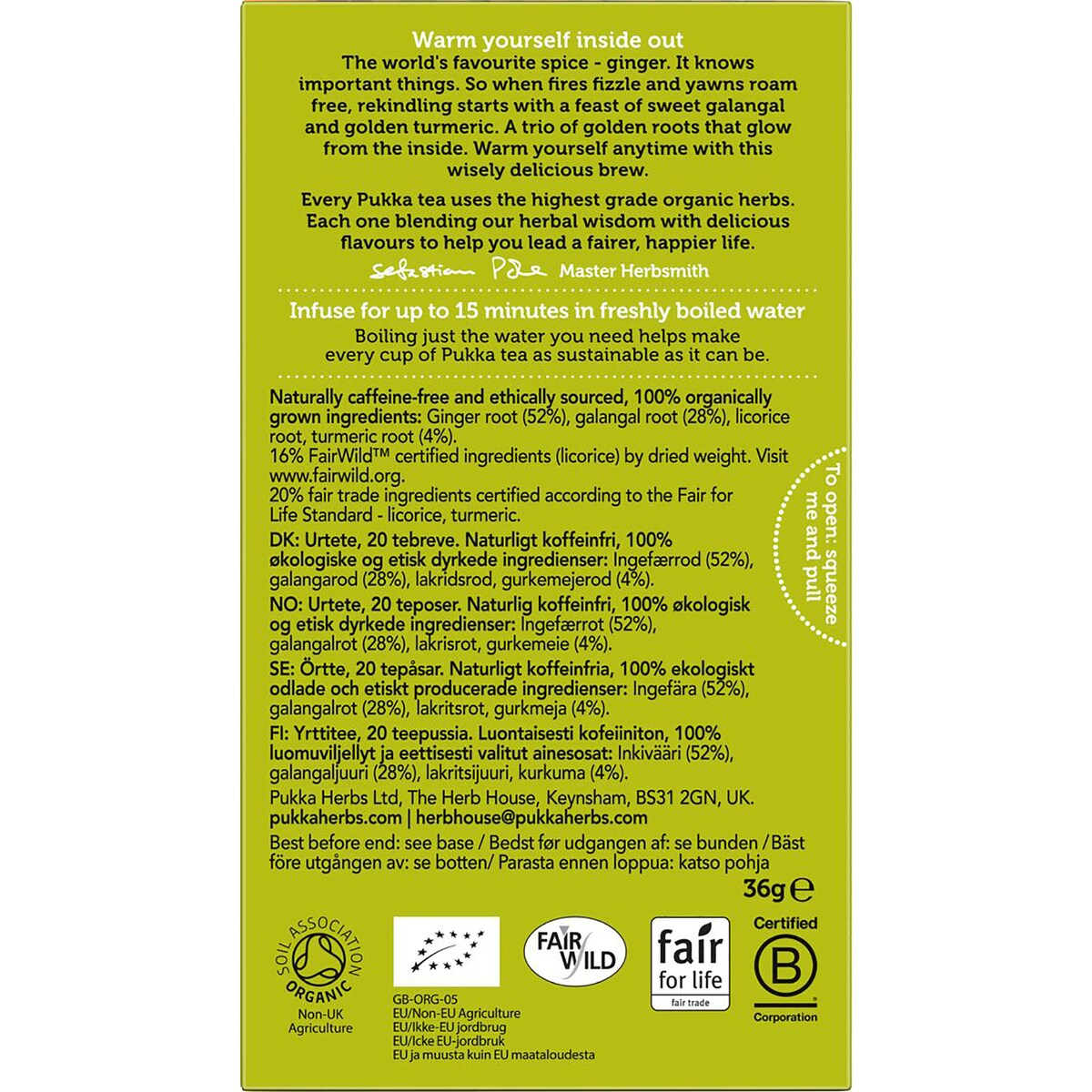 Naturally caffeine free and ethically sourced, 100% organically grown ingredients