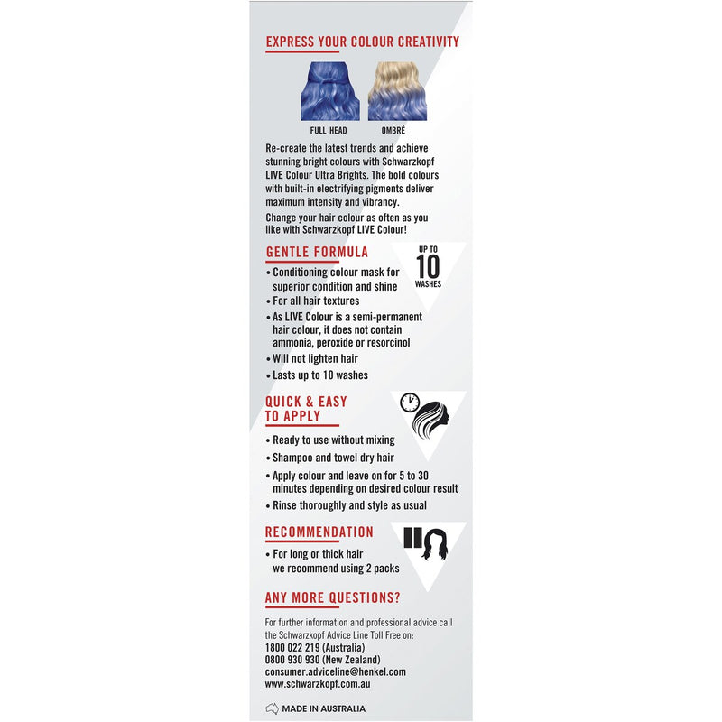 Change your hair colour as often as you like with Schwarzkopf LIVE Colour Ultra Brights! Express your colour creativity and re-create the latest trends with stunning bright hair and maximum colour intensity for up to 10 washes.