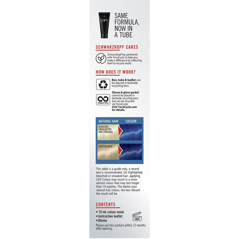 Schwarzkopf Live Colour Blue Hair Dye Electric Blue Semi Permanent each