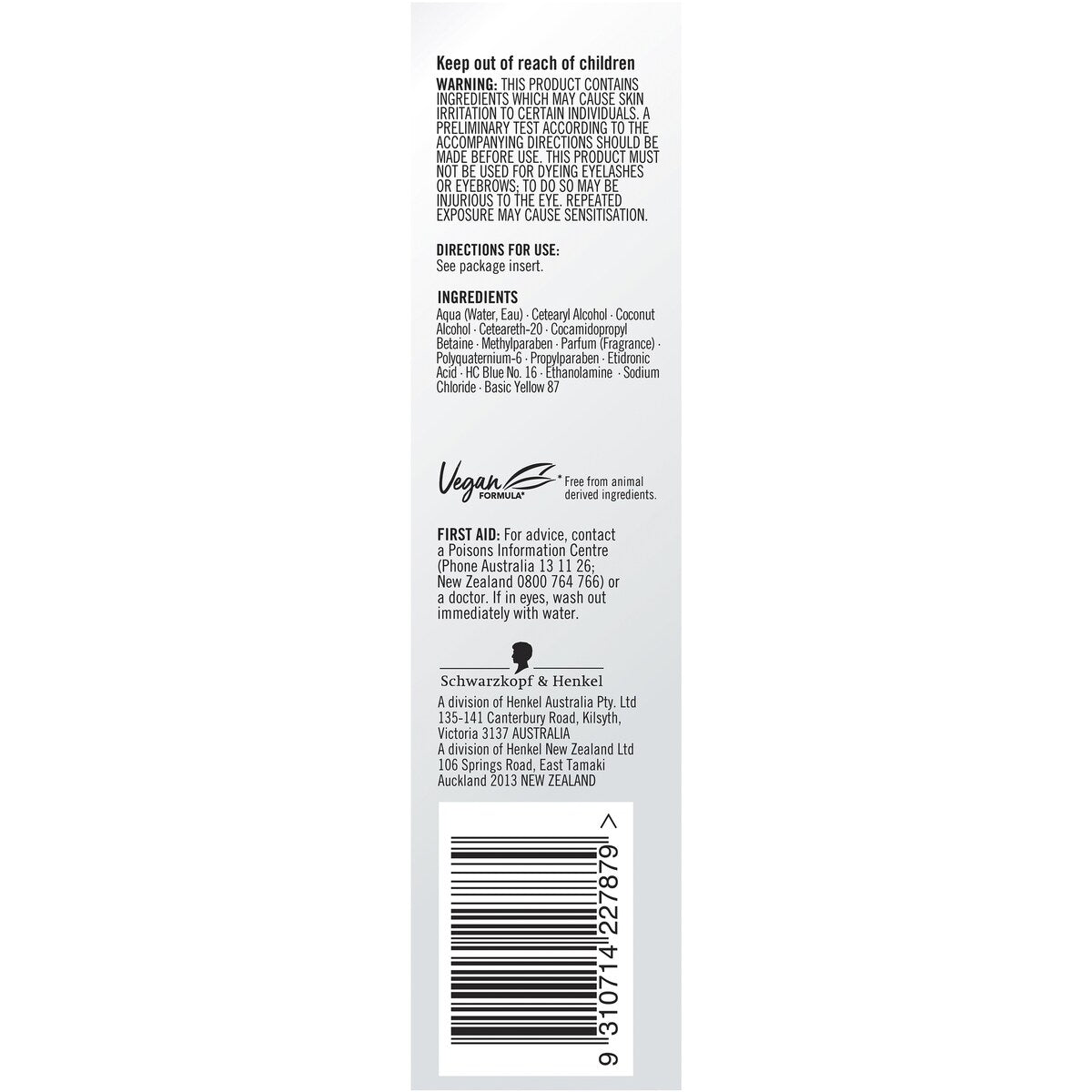 "No ammonia Vegan formula* (*Free from animal derived ingredients)"