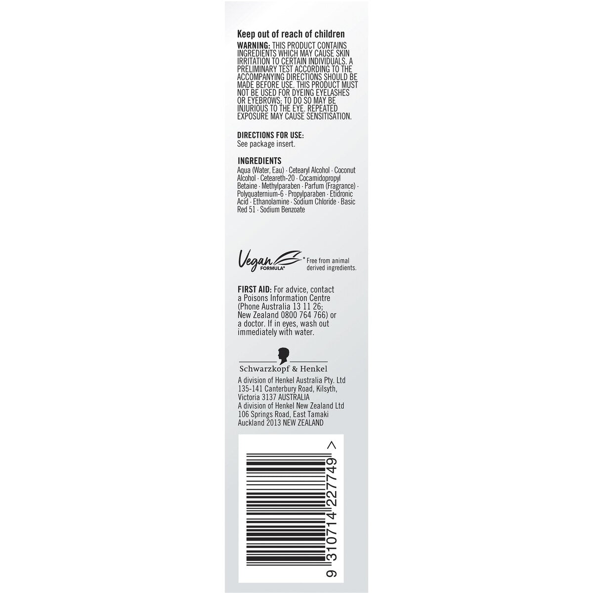 "No ammonia Vegan formula* (*Free from animal derived ingredients)"