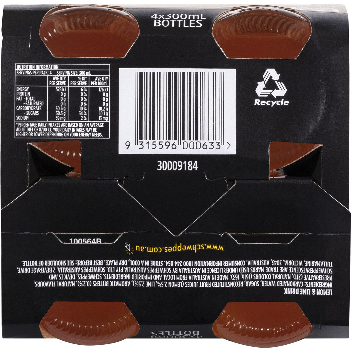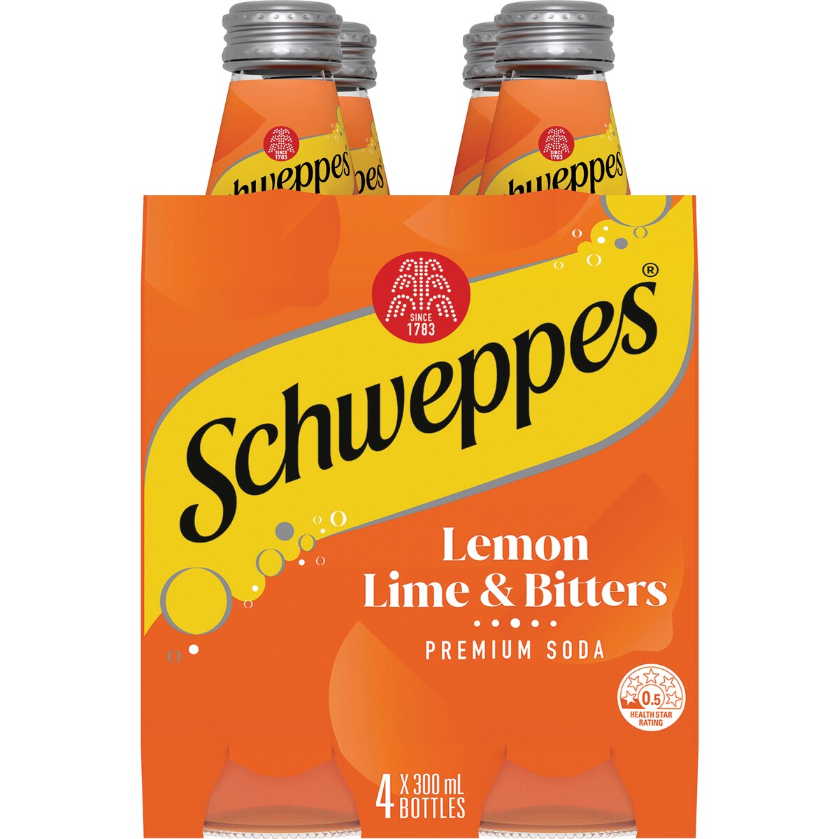 Schweppes Lemon Lime Bitters Soft Drink Mixers Glass Bottle Multipack 300mL x 4 pack