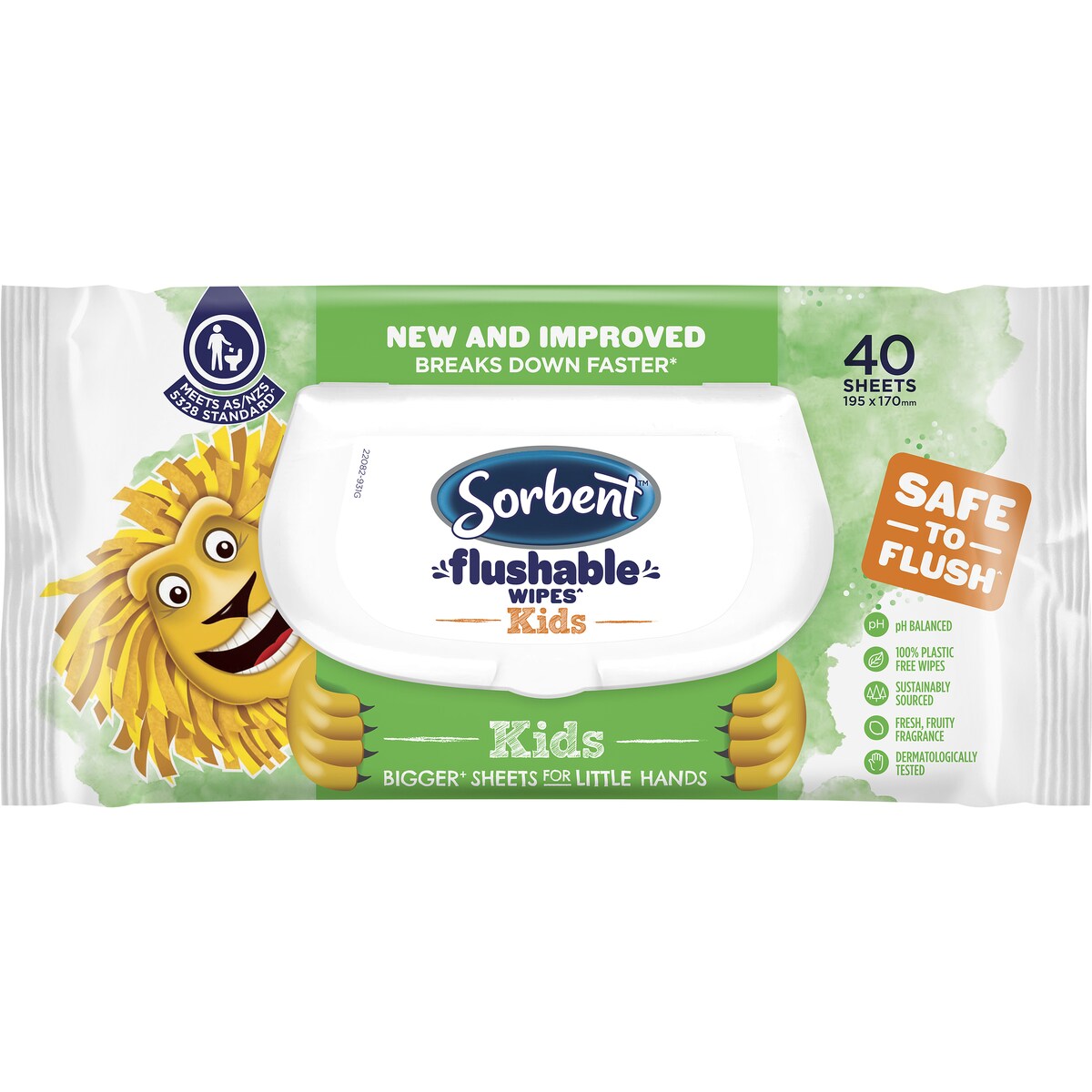 Lenny the Lion is here to help kids learn to be big kids in the bathroom. His mega size wipes are perfect for little hands and great to use after dry toilet paper for clean bottoms all around. Sorbent Kids flushable wipes are enriched with soothing aloe vera, have a fresh fruity fragrance and are pH balanced for use on the most sensitive of little bottoms.
